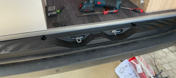 7. Nachdem noch fix die Anhängerdose (die ganz im Stile eines Deutsch Premiumherstellers mit 2 selbstschneidenden Schrauben in den Falz gezimmert wurde), konnte Korb und Ersatzrad befestigt werden