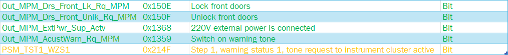 - Step 1, warning status 1, tone request to instrument cluster active