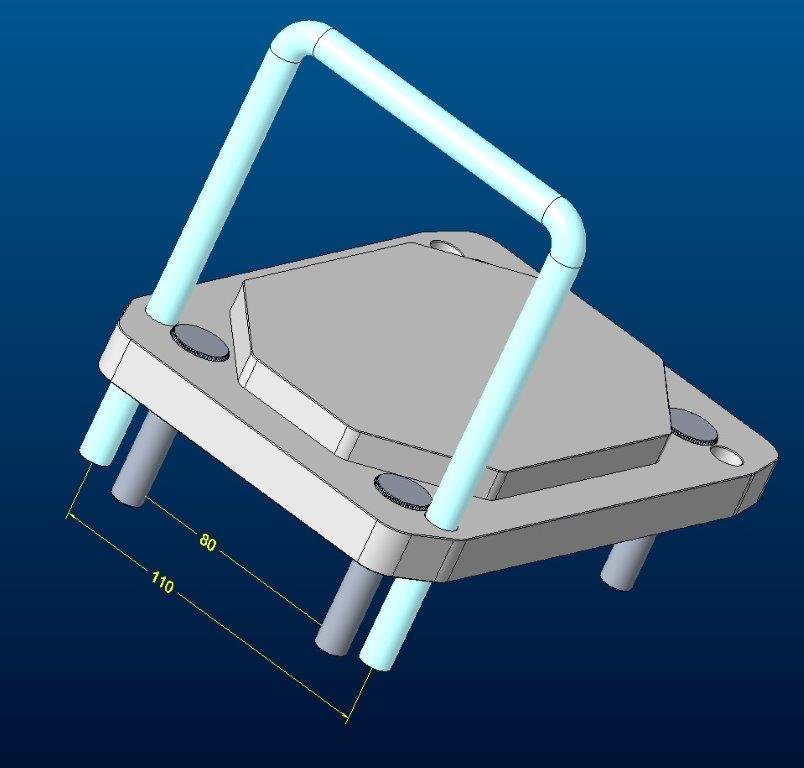 Die Adapterplatte müsste also mindestens 20 Millimeter oder besser 25 Millimeter stark sein und könnte dann etwa so aussehen: