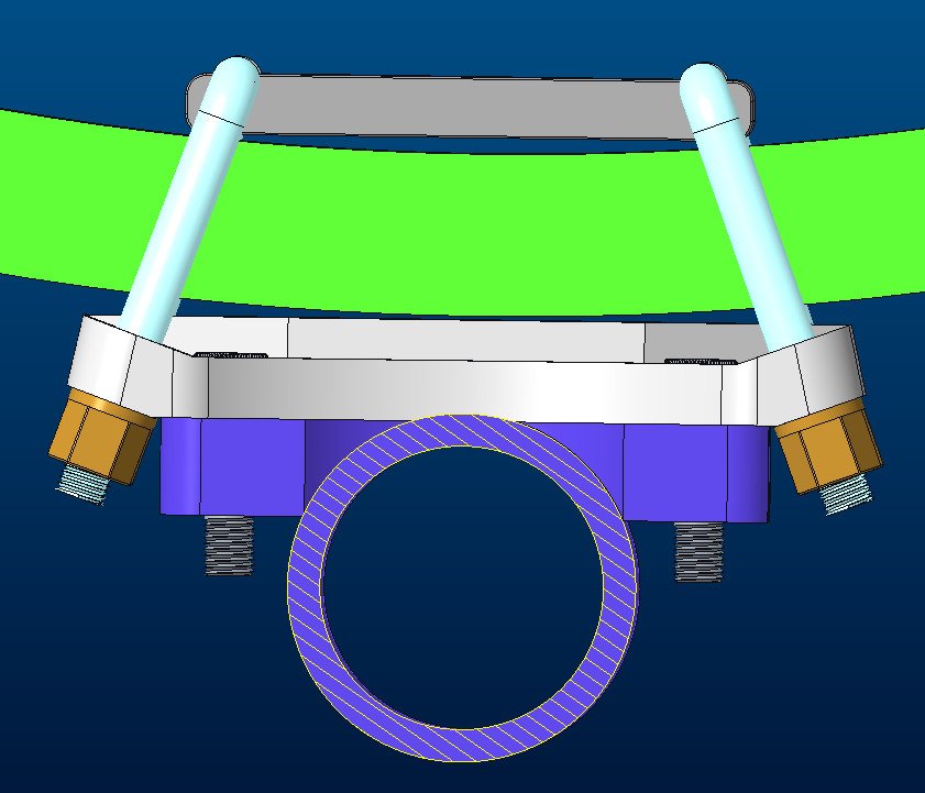 Zum aktuellen Stand sehe ich ein Problem mit der Befestigung. Wenn die Adapterplatte über die Rändebolzen mit Muttern an die Achse geschraubt werden, bleibt zuwenig Platz um die neuen breiteren Federbriden anzuschrauben. Schlimmer noch, ich fürchte die breiten Teile kollidieren mit den Ausbuchtung der Hinterachse für die alte Verschraubung. Eine Lösung wären hier Stehbolzen mit einem abgeschraubten Bügel der die Feder runterdrückt.