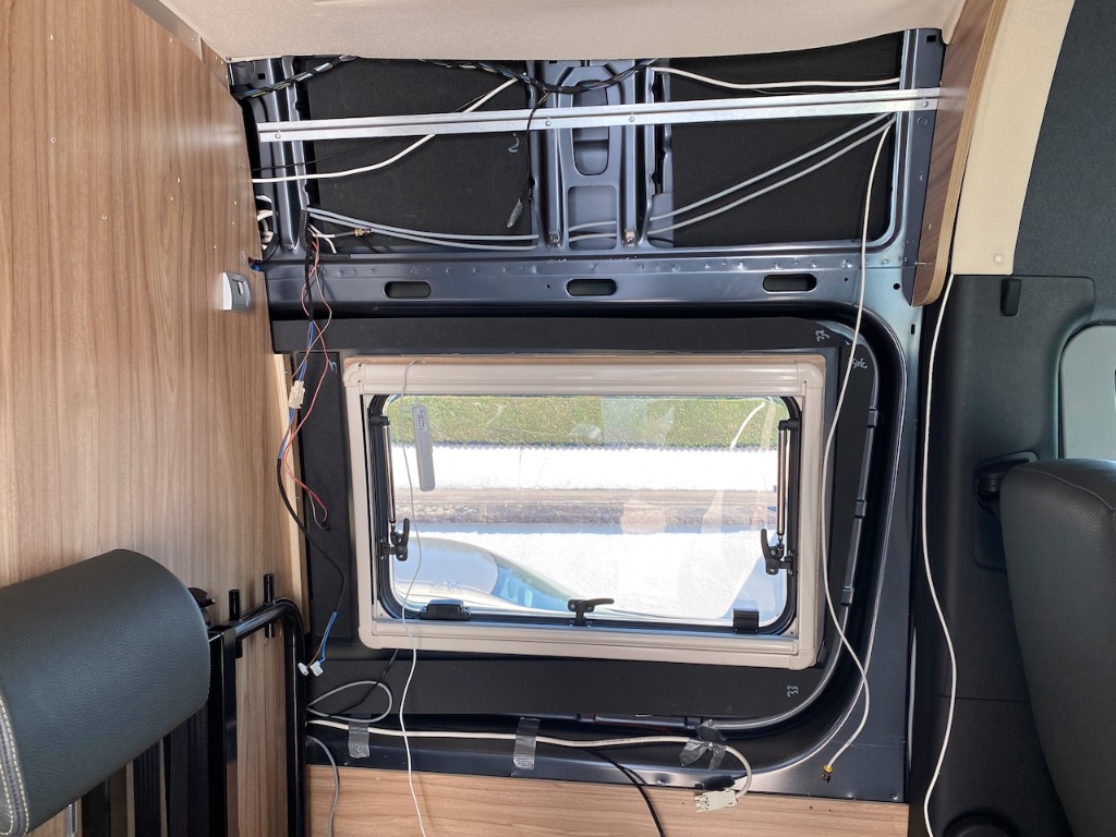 Was ich suchen würde, ist ein Bild, wie es hinter der linken Verkleidung rund um das Fenster aussieht.