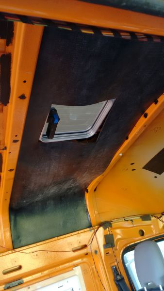 Wenn das alles wieder tröcken war, mit Brantho uberlackiert und dann könnte ich endlich mit die Isolierung anfangen. Aber erstmals muß auch die Himmelverkleidung und alle nicht notwendige Plastikteilen entfernt werden: