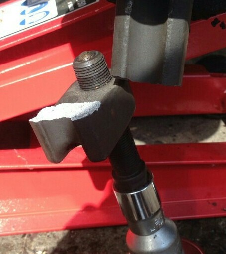 - Ziel dieser Technik ist es, den Spalt in der Pressung soweit zu lockern, dass Rostlöser eindringen kann und das eigentliche Auspressen des Traggelenks ermöglicht wird (sichtbar von blossem Auge ist nicht, ich bin aber ziemlich überzeugt, das die Fügung der gepressten Teile so etwas gelockert wird).