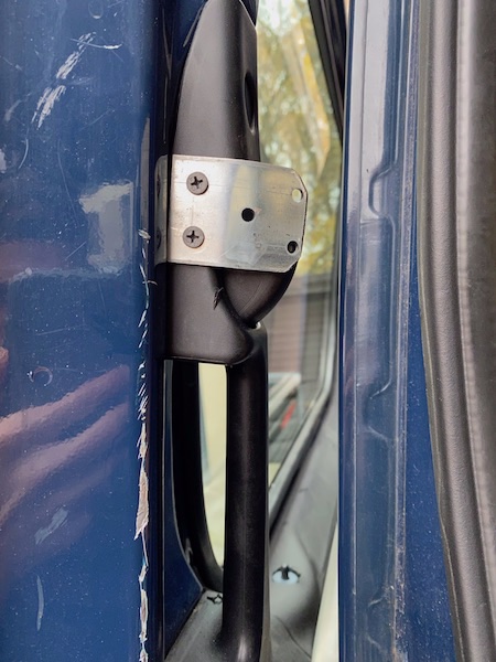 Mein erster Beitrag ist direkt aus einem unschönen Grund: vor einigen Tagen versuchte jemand über die Schiebetür in meinen Sprinter zu gelangen. Als "quick and dirty" Lösung habe ich dieses Blech aus einem Verbinder angefertigt (mittlerweile ist er besser gesichert).