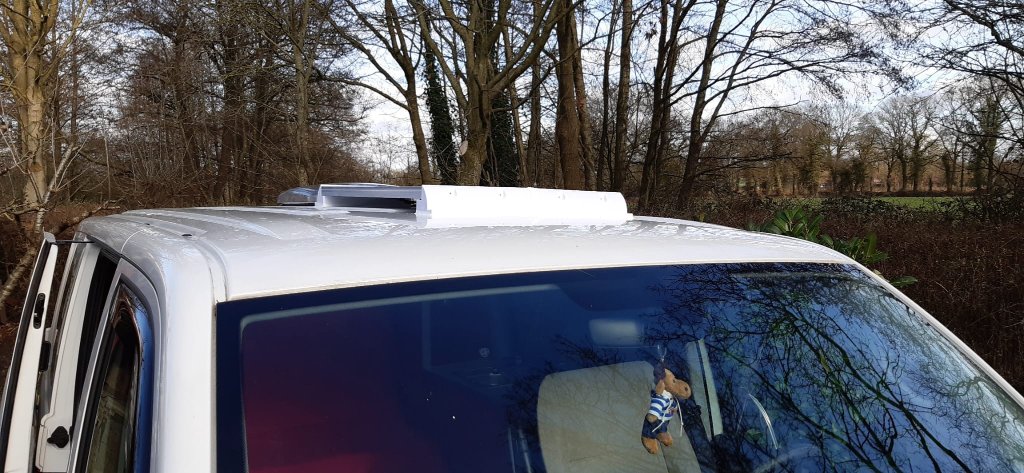 Da habe ich jetzt einfach eine Solarplatte mit den abgerundeten Dachhaltern vorgeklebt. Seitdem hört man die Dachluke auch praktisch nicht mehr.