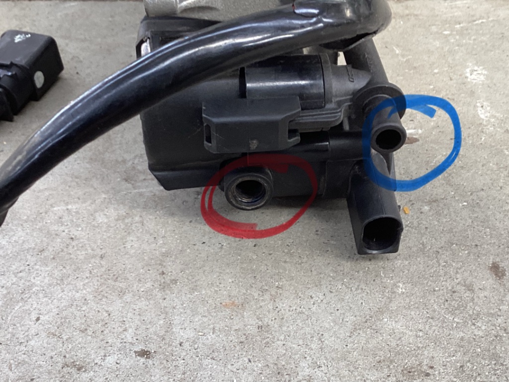 So Fotos hab ich gemacht. Das rote ist die Druckseite, blau wird angesaugt. Es ist definitiv nur ein Luftanschluss aktiv. Ich hab den selber getauscht. Das System arbeitet zwischen ca. 8 - 9,5 Bar. Da an dem Gerät weitere Bohrungen sind( verschlossen) ist es schon möglich dass es noch weitere Funktionen gibt. Jedenfalls bekommt man den nicht im Netz und auch nicht bei WABCO. Die haben mit der Nummer am Gerät nichts anfangen können. Also hab ich den bei Achleitner bestellt. Das Maonometer ist dann an der Drucksleitung eingebunden.Schnafdolin hat geschrieben: 04 Nov 2024 15:36Ein Kompressor hat Saug- und Druckseite. Mehr nicht. Irgendwas wie Zwischendruck oder so gibt es nicht.Schaubi hat geschrieben: 04 Nov 2024 11:07 Und irgendeinen 12 V Kompressor einzubauen geht schon, nur hat der originale WABCO 3 Steckanschlüsse die gewisse Parameter an das Steuergerät weitergeben und er passt eben genau an die Halterung vom originalen.