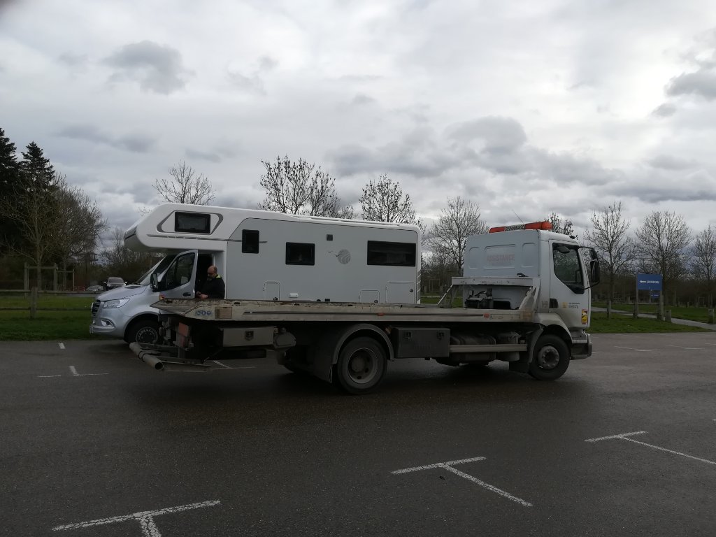 Irgendwann kam der Abschleppdienst mit einem zu kleinen Fahrzeug obwohl ich vorher die Größe des Womos angegeben hatte.