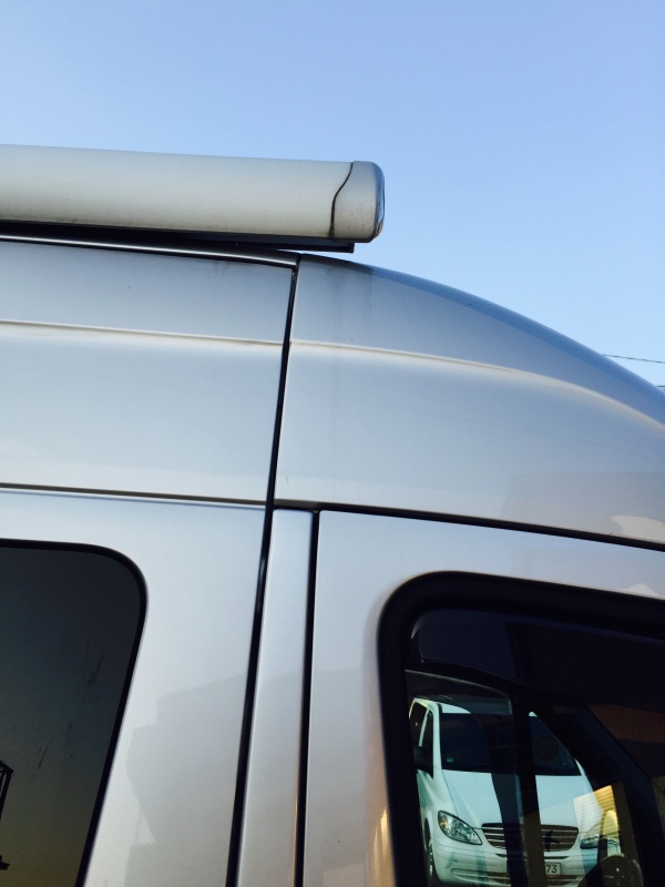 Willst Du allerdings eine längere Markise als die 320-er anbringen, sieht der Überstand wegen des hinten leicht und vorne stark abfallenden Daches nicht gerade gut aus.