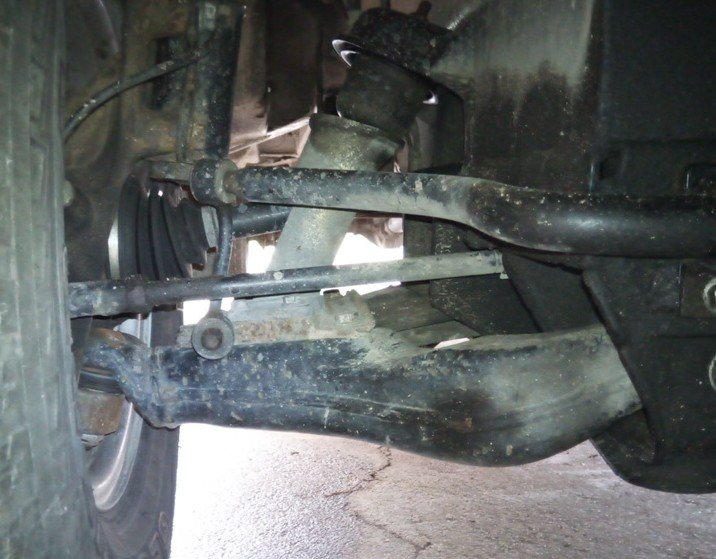 Vor der Aktion konnten ich keinen Fingen zwischen Anschlaggummi und Querlenkerauflage stecken und das Verhältnis von Positiv- zu Negativfederweg war 20 zu 80. Nach dem Umbau ist es ca. 50 zu 50. Als Ideal gilt eigentlich 70 zu 30, jedenfalls im PKW-Bereich.