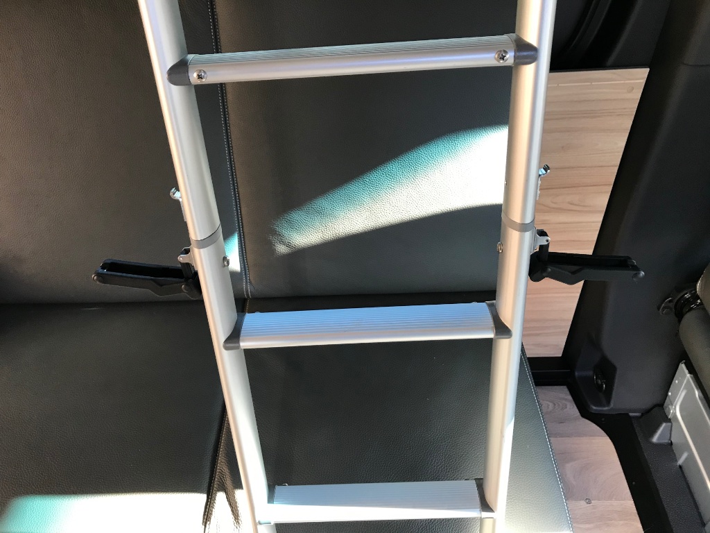 Ich habe die Leiter um 10 cm gekürzt und die beiden Schlosser öffnet sich jetzt auf beiden Seiten praktisch, was das Zerlegen erleichtert. Die Halterungen zum Einhängen der Leiter befinden sich jetzt auf der Fahrerseite.