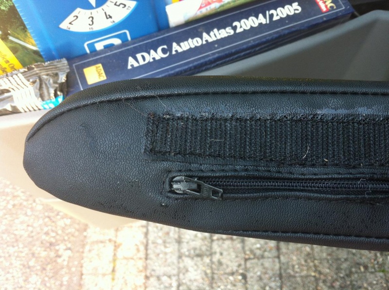Hier die Bilder, Befestigung mit Klettband sieht man auch, eine Seite aufgenäht unten auf das Polster, andere Seite aufgeklebt auf Verkleidung !