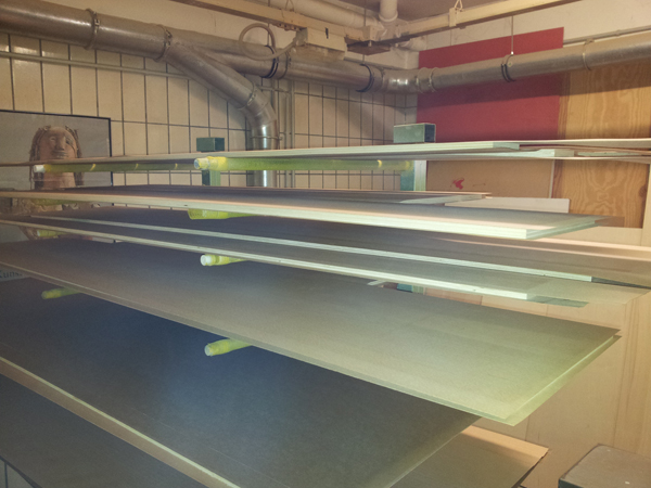 Na bei dem Maschinenpark muß der Ausbau ja was werden, wer kann schon mal seine Platten für den Ausbau selbst mit einer Bürkle Presse beschichten !