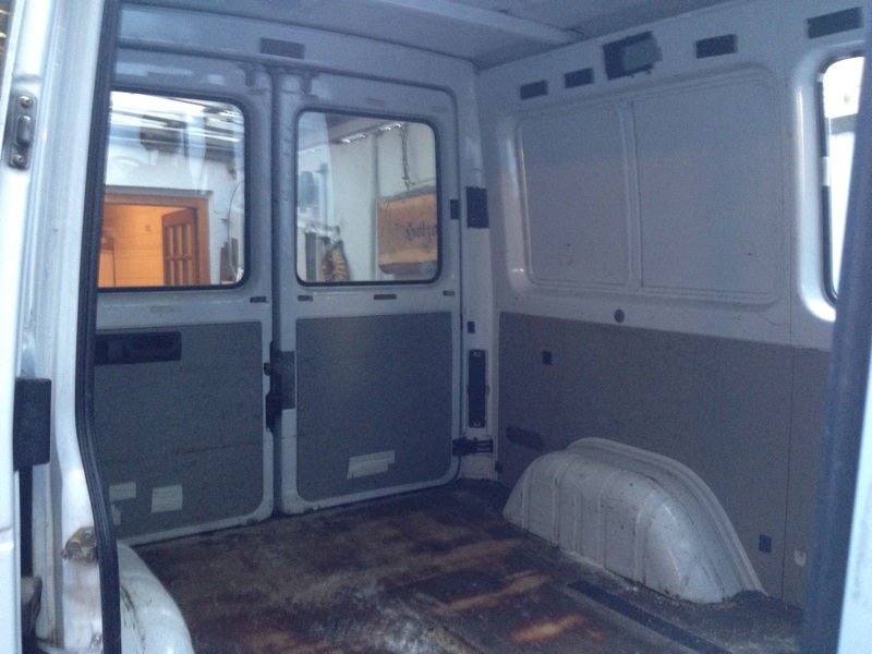 Dazu hatte ich den Holzboden komplett ausgebaut und Rückseitig Einschlagmuttern eingebaut, dann den Boden wieder neu vernietet. An der Wand habe ich die Holzverkleidungen (nicht die originale Pappdinger) ebenfalls abgenommen und ebenfalls Einschlagmuttern eingebracht.