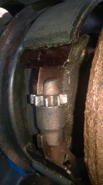 Das sind die falschen Backen, etwas zu groß, vielleicht auch ein Toleranzfehler. Auf dem ersten Foto sieht man daß die über die Sicke am Schutzblech drüberstehen, die müssen genau bündig mit dieser Sicke und dem Nabenkranz auf den die Scheibe kommt abschließen. Ich hatte auch mal neue Backen eingebaut (von Textar) und die paßten perfekt.