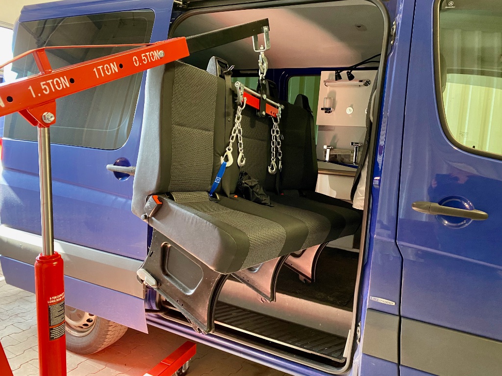 Mein blauer Klaus ist ja ein Achtsitzer. Ab und an möchte man für den Transport auch mal eine oder beide Sitzbänke ausbauen.