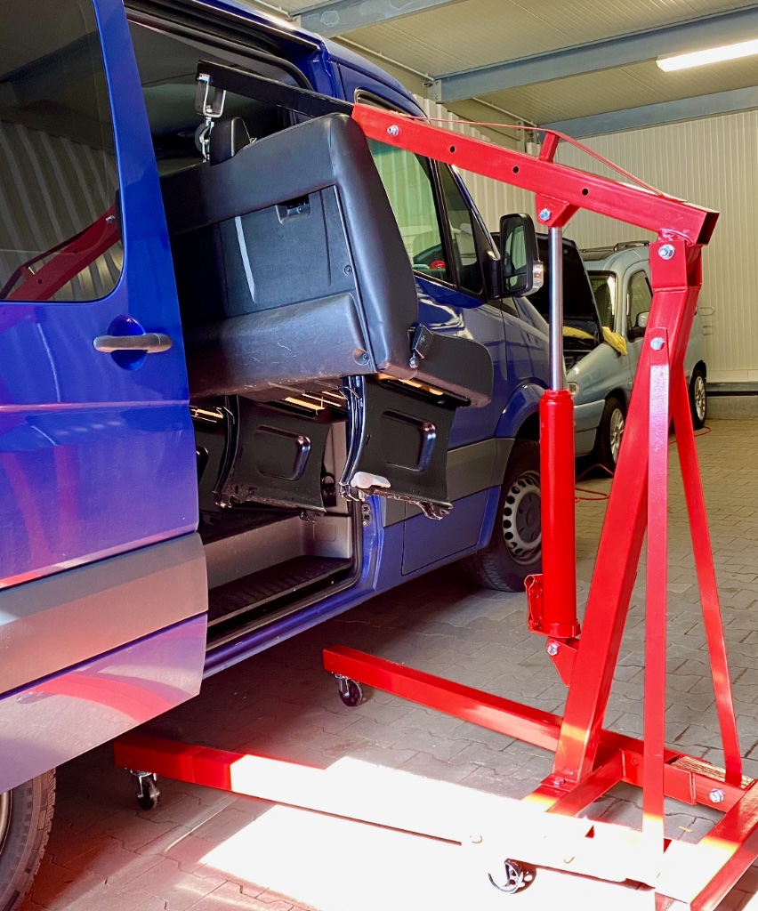 Irgendwann schoss es mir als Idee durch den Kopf: was wäre denn mit einem Werkstattkran / Motorheber? Das müsste doch...