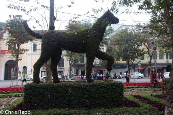 Das Neujahrsfest, man schreibt das Jahr des Hundes, ist erst ein paar Tage vorbei und so finden sich am See noch einige sehr schick gekleidete Frauen, die von ihren Begleitern mit viel Hingabe auf Speicherkarten gebannt werden. Über die Straßen rollen wirklich tausende Roller, die dich beim Überqueren geschickt umkurven, ok, vielleicht ein kleines Hupen ab und zu. Auch hier fällt uns auf, viel Verkehr aber keine Hektik. Anschließend belohnen wir uns mit der ersten Pho Bo Suppe, lecker! In Euro würde uns der Preis die Tränen in die Augen treiben: 100.000 Dong, für Dong- Millionäre ein Klacks. Die Vietnamesen haben offensichtlich etwas Höhenangst sie sitzen am liebsten auf Kindersitzen.