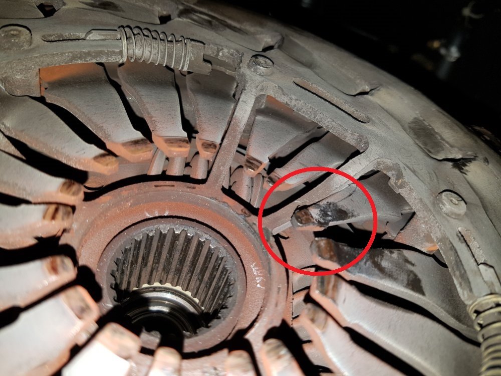 bei mir war nach einem "klong" ein teil der Druckfedern(Druckplatte) gebrochen. Die Kupplung hat dann nicht mehr getrennt. Schalten war somit bei laufendem Motor nicht mehr möglich. Als sich die Sache angekündigt hat wurde noch getrennt aber nicht mehr sauber (sehr hartes schalten).