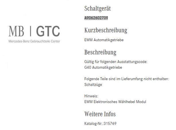 Das von Vanagaudi herausgesuchte EWM mit dessen Artikelnummer A 906 260 35 09 ist das Nachfolgemodell und würde auch passen, jedoch brauche ich weder die Abdeckung, noch den Schaltknauf, ergo ersparte ich mir die ca. 70€ Differenz dafür.
