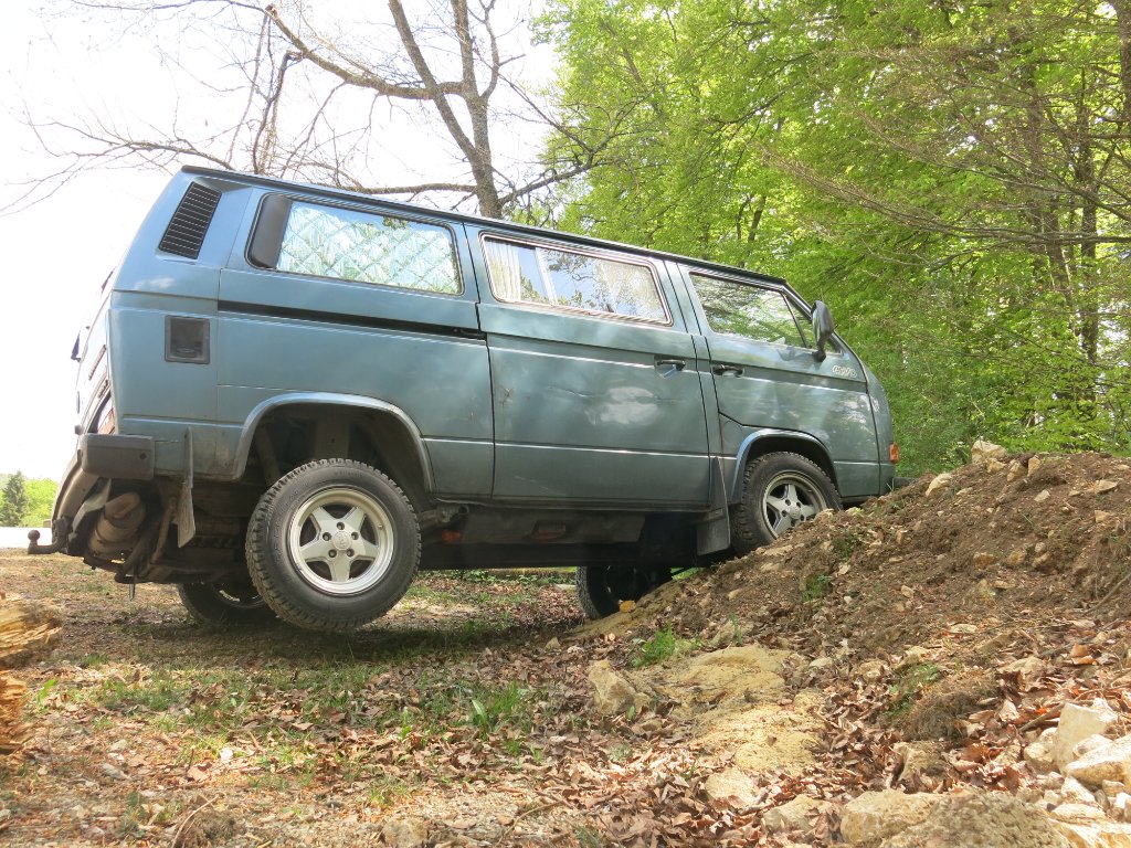 Wenn alles nicht geht, muß ich über Verkauf nachdenken. Eventuell wäre vorerst noch etwas Höherlegung denkbar, ich halte aber den Vorderradantrieb in der Regel für wichtiger. Auf einer rutschigen Wiese nutzt Höhe garnichts. Und über Bäume fahre ich ohne Allradantrieb eh nicht. Gute Reifen jedenfalls halte ich für sinnvoll, die haben selbst bei meinen T3 Syncros noch was gebracht. Aber da gab es so schon keine Halten.