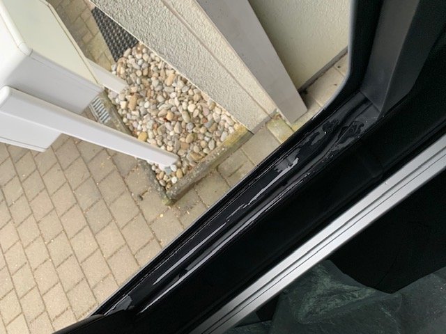 Bei Regen sammelt sich Wasser, oberhalb der unteren Schiebefensterdichtung, und kann nicht abfliessen.