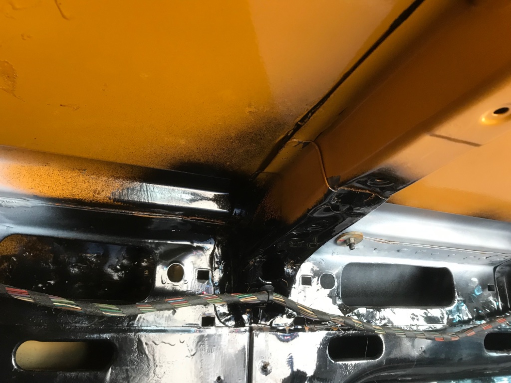 Achja.... wenn du ihn doch behälst, mach dringend reichlich und ohne zu sparen Hohlraumwachs innen rein, sonst geht die Rosterei gleich weiter. Hinten im Portal fängt es schon an und an den Stößen, wo der Dachholm gepunktet ist. "Gepunktet" war jetzt ironisch bei den fetten MAG- Flatschen, die mit der Flex verschliffen wurden