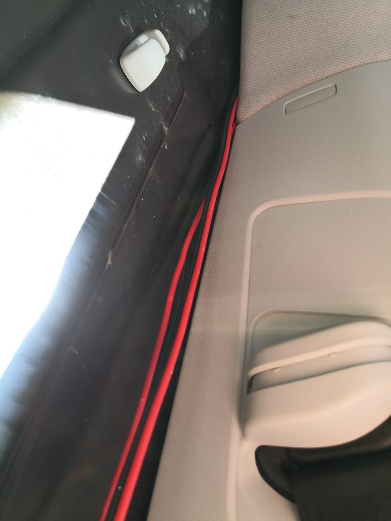 Demotiere besser die B-Säulenverkleidung nach dieser Anleitung und tape die Adern auf der B-Säule fest. Da laufen noch mehr Leitungen entlang, denen kannst du folgen. Die Adern solltest du mit Gewebeband, zum Beispiel Certoplast 514, umwickeln.