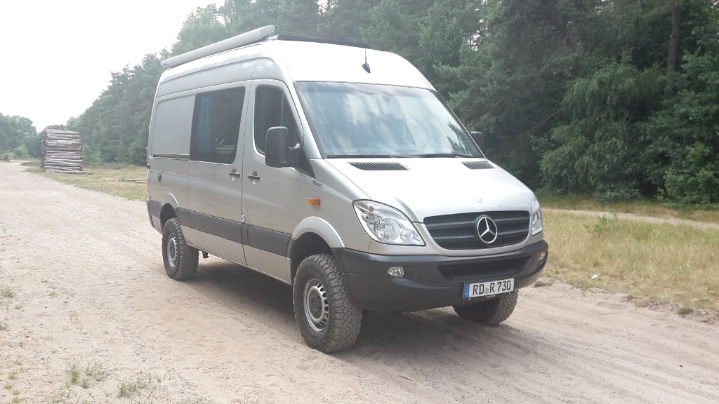 Mein Name ist Tino und ich habe einen 906er mit Oberaigner Nachrüst-Allrad, Igelhaut Hecksperre und Untersetzung. Es handelt sich um den 318CDI V6. Ausgebaut ist der L3H2 zum autarken Wohnmobil.