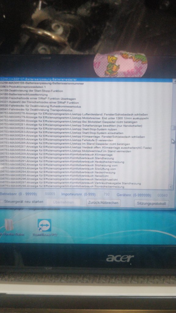Im VCDS das Stg 19 ausgewählt, dort den Button "Anpassen" gedrückt. Dann aus dieser elendslangen Liste den Bereich der Batteriedaten heruntergescrollt, dann Batteriedaten einzeln nacheinander korrigiert: et voila' nach Neustart lädt die Lima die neue AGM nur noch mit 14,6 Volt.