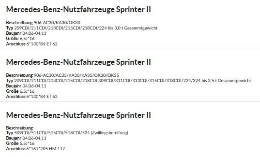 Aber wie Rosi schon geschrieben hat, die Unterschiede unbedingt beachten (z.B. ET/Schwerlastausführung/Traglast).