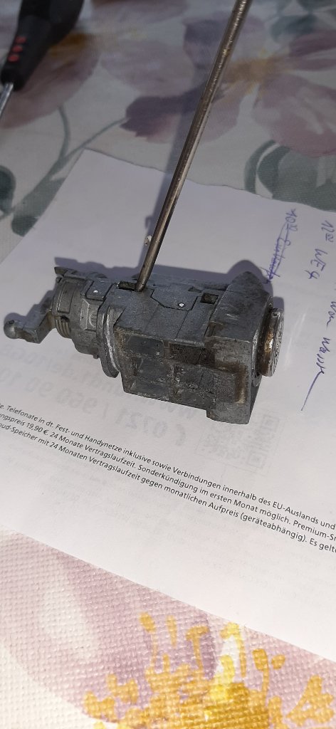 Hallo kann mir jemand sagen wie ich den Schliesszylinder aus dem Gehäuse bekomme, einen Schlüssel habe ich leider nicht.