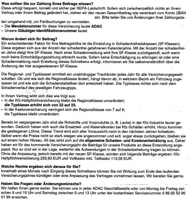 Mein Sprinter war 2023 und ist 2024 mangels günstigerer Alternativen weiterhin bei der ADAC-Autoversicherung versichert; VK von SF11 auf 12 + TK von SF29 auf 30 = von 384,59€ auf 428,65€.