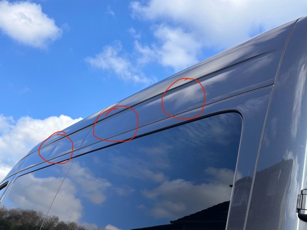 Hallo Leute, ich habe letzte Woche den 319er Tourer abgeholt bei Regen und bin damit nach Hause gefahren. Gestern musste ich bei Sonnenschein feststellen, dass das HochDach links und rechts an den jeweils gleichen Stellen eine Delle hat. Muss ich das akzeptieren? Der Verkäufer meinte, das kommt von den Rippenstreben oben am Hoch. Das Fahrzeug hat über 70.000 € gekostet. Was meint ihr, was ich tun sollte? Habt ihr das auch?
