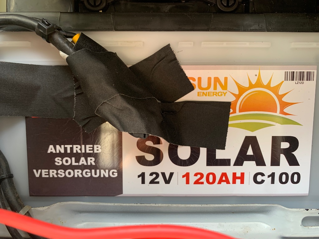 Anbei ein Foto unserer Zusatzbatterie (Solarbatterie).