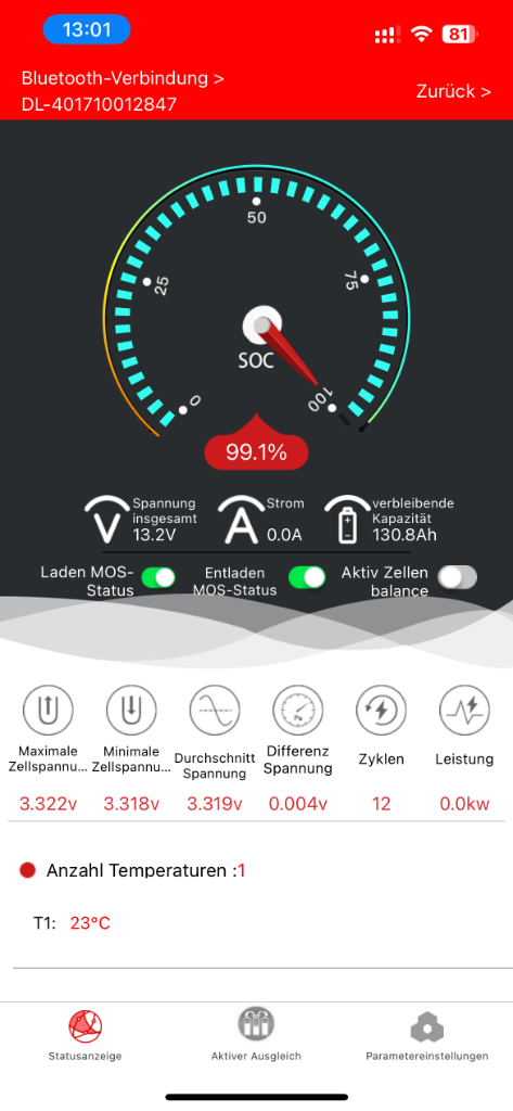 Ist jetzt nicht soooo wild, da ich mich auf den BMS ja verlassen kann. Werde die Batterie aber mal komplett leer und wieder voll machen!