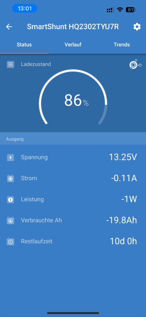 Nabend, habe seit zwei Tagen unterschiedliche Anzeigen auf dem BMS und SmartShunt was den Ladezustand angeht.