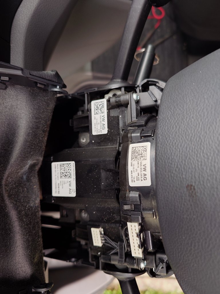 Dann habe ich kleine schwarze Stecker im Lenkrad neben Airbag angeschlossen und probiert ob die Tasten am MFL funktionieren... kurze Probefahrt, leider keine Funktion. Kein GRA und MFA nicht