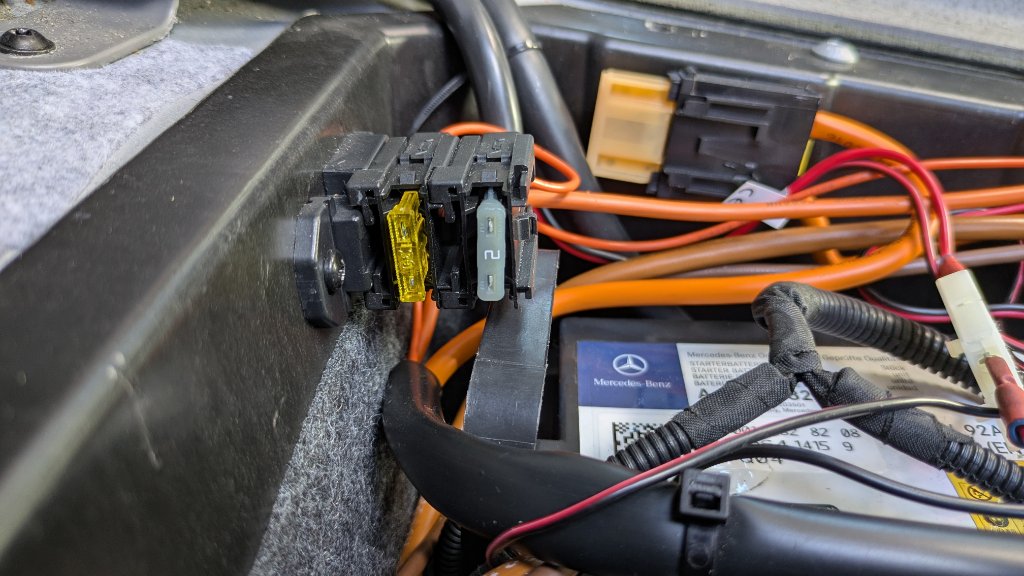 Eine Kleinigkeit, die noch behoben werden muss, ist das Kabel am Aux-Eingang am Shunt. Die Sicherung (Glassicherung) bzw. deren Halter hat 'ne Macke und somit muss sie Raus damit mich der Shunt, bei Unterspannung warnen kann.